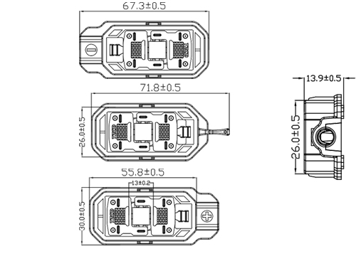 額定電流 / Corresponding current 20A、25A、30A | 防水結(jié)構(gòu) / Waterproof Structure 灌封膠 / Potting sealant |